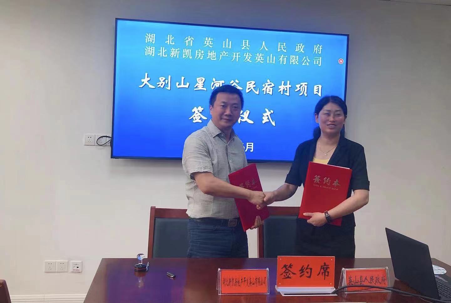 2021年6月,湖北新凱房地產(chǎn)開發(fā)英山有限公司與英山縣人民政府簽訂“大別山星河谷民宿村項(xiàng)目”投資框架協(xié)議書,該項(xiàng)目總用地面積400畝,將與湖北省文聯(lián)合作共同打造“文化名人”民宿村,使之成為英山文化度假的新坐標(biāo)、黃岡文旅的新名片、湖北文化的新勢(shì)力。